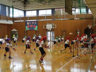 運動会本番まで、残りわずかとなってきました。5月27日(月)は残念ながら雨の一日となり、全体練習も体育館で、開閉会式の動きを確認しました。