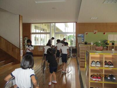 2年生が1年生をリードしながら・・・~学校探検・熊本丸出港式~