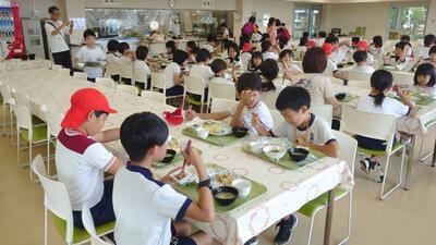 朝食タイム。昨日一日一緒に活動し、すっかりなかよしになっています。朝食もしっかり食べていました。
