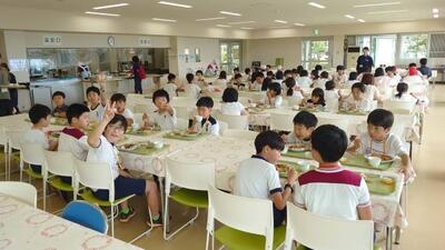 体育館では、3年生の理科「ゴムと風の力のはたらき」の授業が行われていました。ゴムの力の動きについて学んだことを生かして、ねらった場所に車を止めるにはどんな工夫をしたらいいか(共有の課題)、もっと遠くの場所をねらうにはどうしたらよいか(ジャンプの課題)について試行錯誤しながら考えました。1年生は、音楽「うみ」。海の様子を表すには、どこをもりあげて歌ったらよいか、ペアで相談しながら気持ちを込めて歌っていました。