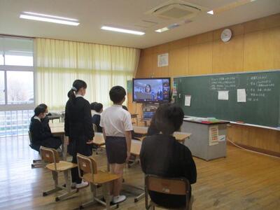 始業式は、インフルエンザ等の感染症対策から各教室をつなぐオンライン方式で行いました。校長からは、3学期のキーワード「夢」「ありがとう」について話をしました。1年間のまとめであり、次の学年の準備の学期(0学期)でもある3学期、「こうなりたい」「これができるようになりたい」という夢(目標)をもち、その中で自分を支えてくれる人への感謝の気持ちを忘れずに「ありがとう」の言葉をかけ合いながら夢を叶え、笑顔の花を咲かせてほしいと思います。その後、生活・保健・図書の担当の先生から3学期に向けた話がありました。また、保健からは2学期に取り組んだ「ハテナツ」パーフェクトだった子供、図書からは2学期たくさん本を読んだ子供の名前も紹介され、名前を呼ばれた子は各教室で元気よく返事して立ち、みんなから拍手をもらい嬉しそうでした。