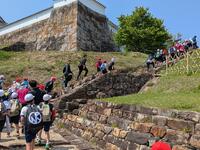 富岡城は、津波等の避難の際の第3避難所になっています。今回の遠足はその確認でもあります。