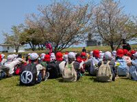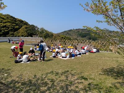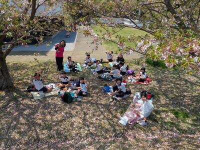 3年生のみなさんは、桜の木の下でおいしいお弁当タイムです。