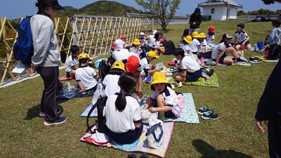 2年生のみなさんは、みんなで輪になってお弁当タイムです。