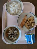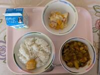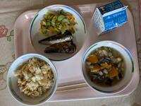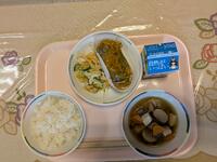 さて、今日の給食は、いわしのおかか煮、タケノコご飯、さらたまサラダでした。まさに春メニュー。おいしくいただきました。