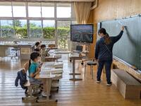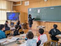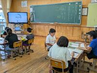 3年生は理科の学習。活発に教科書のイラストから考えたことを意見を出し合い、考えを深めていました。