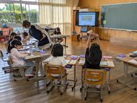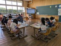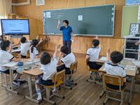 1年生は、10までの数の学習中です。先生が示した数をブロックで並べます。みんな集中してよく取り組んでいます。