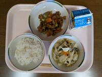 今日の給食はこれ。チキンチキンゴボウ。なにか、リズム感あるネーミングですね。そしてすいとんじる。