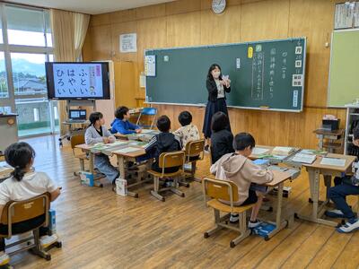 2年生は、国語「ふきのとう」の学習中。音読の際に声を小さく読んだのはなぜ?みんなで考えます。