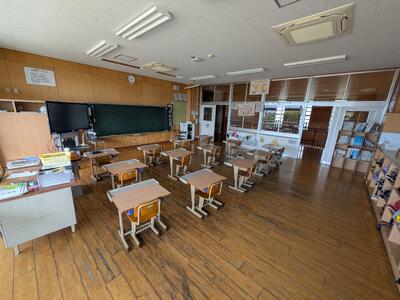 さて、図書館にいっている4年生教室の様子。整然として、机の位置やいすの位置もばっちり。ゴミ一つ落ちていない。あまりにもすばらしくて、写真を撮ってしまいました。