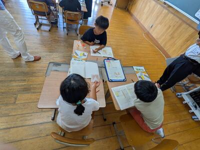 それぞれで進度が違いますが、本を見たり、ノートを見ながら清書したり、先生に相談したりしながら取り組んでいました。看護師、サッカー選手、博物館の職員、調理師・・・・・子どもたちの夢、どれもステキです。