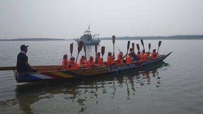 今日は、苓北の海にまつわる行事からです。4年生の総合的な学習の時間で海に。ペーロン体験です。暑くならない1.2時間目で体験。少しモヤがかかっていて、海の上は心地よさそうです。