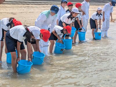 美しい海のめぐみ 4年生はペーロン体験 5年生はマリン校のご協力のもと稚魚放流