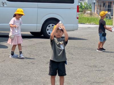 昨日の1年生はペットボトルに水を入れた水鉄砲遊びです。楽しそうに遊んでいました。