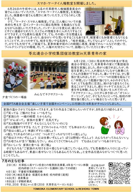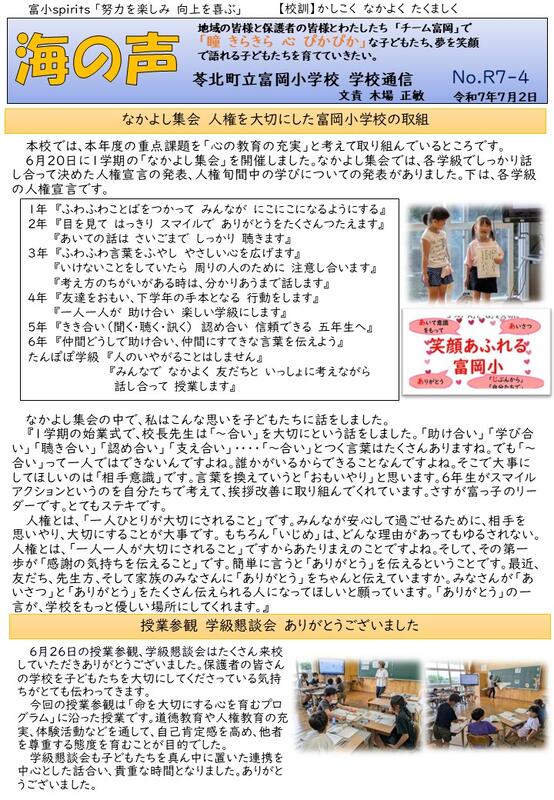 暑い日が続くと思います。保護者の皆様、地域の皆様、そしてこのHPを見てくださっている皆様、お体ご自愛ください。1学期間ありがとうございました。