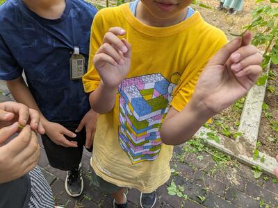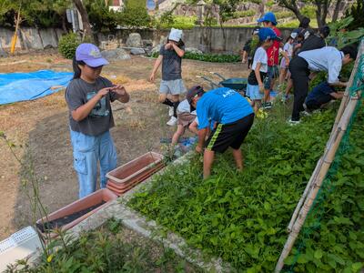 さて、たんぽぽ学級や低学年の農園の夏野菜もすくすく育っています。けっこう収穫もあったようです。