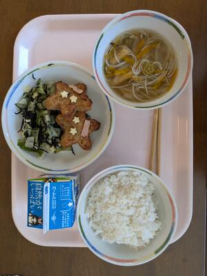 今日の給食はこれです。すみません。写真が逆になってしまっています。おいしくいただきました。