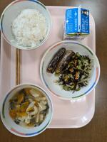 今日の給食は豚汁と紅白なます、卵焼きでした。紅白なます縁起がいいですね。ん~~今日は祭事でしたっけ?美味しく頂きました。