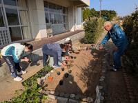 今日の午後は2年生が玉ねぎ植えです。地域学校協働活動推進委員の方がゲストティーチャーで植え方を教えてくださいました。