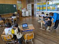 1年生は、生活科の学習です。タブレット端末を使って、学校にある花や植物をパチリ♪。