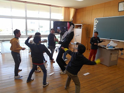 若い4年担任の先生は自ら鬼役を・・・痛いだろうなあ