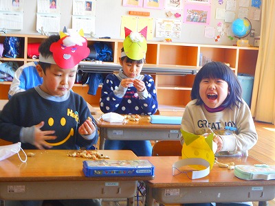 たんぽぽ学級では♪「おには~そと~」「ふくは~うち~」♪