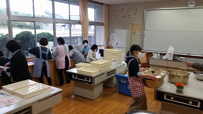 お別れもちつきを控えた2日は準備です。たくさんの保護者の方の応援があり、1時間ほどで終わりました。6年生もいっしょにもち米をと