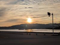 今日の朝日ちょっと神秘的でした。朝の交通指導の時にパチリ♪