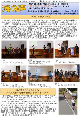 12月19日(金)学校通信海の声R7年度12号を配付しました。掲載させていただきます。