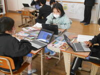 資料や取材動画を見ながら課題に迫るための話し合いです。