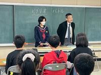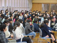 12月12日(火)砥用中学校の体験入学。生徒会の先輩に校舎を案内してもらい、中学校の先生と一緒に、国語と音楽の学習をしました。最初は、少々、緊張気味の様子でしたが、ちょうど掃除の時間で、行くところ行くところで挨拶してもらい、また、優しい説明や対応、また、楽しい国語と音楽の学習をすることができ、中学校生活への期待が膨らみました。