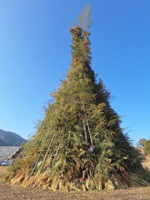 1月13日(土)開催された「第25回 みどりかわ湖 どんど祭り」に、学校の玄関(来賓玄関と児童玄関)に飾っていた注連飾りを持っていってもらいました。当日は、本校の子供たちもたくさん参加していました。ちらしには、「日本最大級の炎の祭典 高さ20mのやぐらに火を放ち、新年の五穀豊穣と無病息災を祈る」とあります。町内の山林から切り出した孟宗竹や稲藁などを使い、高く高く組まれたやぐら2基が勢いよく炎に包まれました。新しい年を迎え、無病息災,安心安全で生き生きとした学びが展開される学校でありますように!