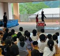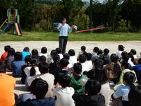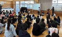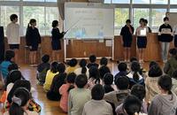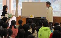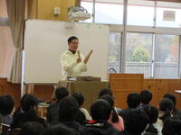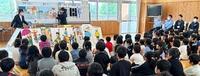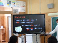 5年生が、県農林水産部森林局森林保全課の治山班長と技師の方2名に来ていただき、「森林の働き」について学習(森林は、①「地球環境保全機能」;森林の植物が二酸化炭素を吸収し、気候の安定化にも貢献する。②「生物多様性の保全」;たくさんの生き物たちがくらしている。③「保健・レクリエーション機能」;リフレッシュできる空間や行楽の場を提供する。④「物資生産機能」;木材やきのこなどの林産物を生産し、机や紙など、いろいろなものに生まれ変わり生活を助ける。⑤「文化機能」;学習の場となったり、地域の風土・伝統文化を育む。⑥「土砂災害防止機能」;木の根が地面を支え山崩れを起きにくくする。⑦「水源涵養機能」;地下に水を蓄えて、洪水がおきにくくする。)しました。熱心に話を聞き、クイズで盛り上がるなど、集中して楽しく学習に参加することができました。