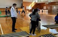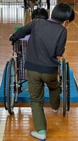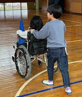 社会福祉協議会と陽光園から講師としてお出でいただき、「車椅子のことについて知り、共に支え合うことの大切さを学ぶこと」を目的に学習しました。「車椅子を使うときに大変なところ」、「車椅子を使うときに、一番に気をつけなければならないこと」,「車椅子を使っている人たちに対して、わたしたちができること」等々、質問をし、実際に車椅子に乗ってみて、車椅子を押してみて、体験することで学びを深めました。「背もたれの角度は大丈夫?きつくない?」、「段差があるからね」、「ブレーキをかけるよ」等々、常に声をかけながら押している子供がいました。やはり、思い合う心が大切ですね。