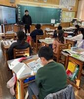 12月11日(月)、砥用中の生徒による読み聞かせをリモートでしていただきました。各教室で、1年生から6年生まで、集中して聴いていました。読み聞かせ後、職員室では、本校卒業生が中学校で活躍している姿を見ることができて、職員の笑顔がたくさんあり喜んでいました。