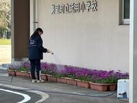 卒業のお祝いに、「JA砥用助け合いの会」の方から、とてもきれいな花をいただきました。代表の子どもがお礼の言葉を言い、みんなで写真撮影をしました。いただいた花は、卒業式会場に飾らせていただきます。ありがとうございました!