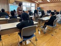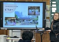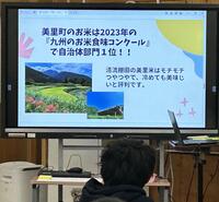 5年生が、株式会社 美里まちづくり公社の方を講師としてお招きし、「美里町の魅力を伝えよう」という学習をしました。美里町には古く誰も住んでいない家がたくさんあること、50年以上前に建てられた木造の古い家は立派な木材を使って建ててあること、今でもしっかりとした柱が残り、木製の引き戸や扉も貴重で、古い建物を再生して住む人たちが増えてきていること等を教えていただきました。また、鹿の角の実物を見せながら、加工して、どんなところに使われているのかも教えていただきました。美里町のたくさんの魅力と、情報を発信し、様々な取組をされていることを知ることができました。