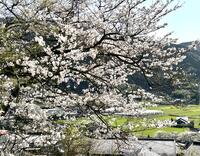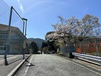 校庭の桜の花が満開です!出勤時の登坂に見上げる形で見る桜の花,青空を背景にした桜の花,また、正門から砥用の家々を背景にした桜の花、運動場の桜の花、どれも素晴らしい風景です。