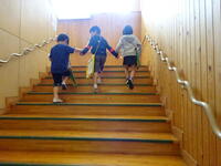 4月19日(金)2,3校時は、生活科の学習での学校探検。2年生が1年生を案内しました。2年生は、自分たちで、各場所の説明や1年生への配慮を考えたり、練習を一所懸命にしたりして、当日は、手をつなぎながら案内しました。案内が終わったあとも、1年生のワークシートの書き方を寄り添って教える等、先輩としての優しい心配りがありました。1年生は、校長室や職員室,保健室,事務室等へ入る時の挨拶の仕方を一人一人練習しながら入り、先生方に自分で作った名刺を渡して挨拶をしました。興味津々な顔と緊張した様子が印象的でした。