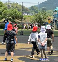 5月20日(月)に、運動会縦割り班競技の練習と係打合せを行いました。全校児童が縦割り班で行う競技は、じゃんけんしてのリレーです。じゃんけんの結果次第で、次の人へつなぐ時間に違いがあります。運動会当日、じゃんけんに勝つといいね。係打合せでは、4,5,6年生が、それぞれの係の活動内容や心掛けることなどを確認したあと、役割を分担して練習を行いました。運動会当時は、生き生きと活動する姿を見ることができるはずです。期待しています。