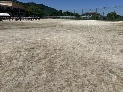 水曜日の放課後、職員が運動場をきれいに均しました。そして、今朝、登校し学習の準備をした後で、均したときに浮いて出てきた小石を拾い集めました。短い時間での小石拾いでしたが、たくさん集まりました。明日も朝から小石を拾います。