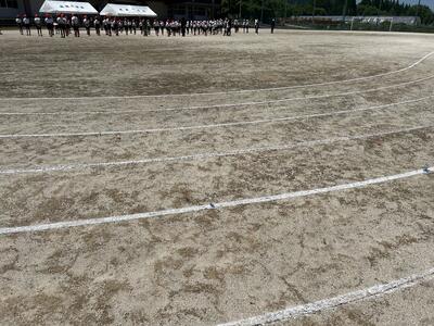 10月20日(金)に実施予定でしたCブロック陸上記録会は、雨天のため、残念ながら中止となりました。あれだけずっ~と晴天だったのに、なぜ、今日に限って雨が・・・。練習を積み重ね、また、気持ちを盛り上げてきていただけに、中止になり、とても残念でした。そこで、24日(火)9:00~11:00の時間、励徳小と合同でスポーツ交流会;陸上記録会を実施しました。月曜日しか日がない中で、交流会に向けての準備(グラウンドの整地とライン引き、各種目の準備等)や進行のリハーサル等々をしていただきました。きれいに整地され、ラインが引かれ、テントまで準備してあるグラウンドを見てびっくりしました。本当にありがとうございました。お陰で、子どもたちの一所懸命に走り、投げ、跳び、バトンをつなぐ姿と交流する様子を見ることができました。