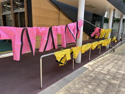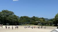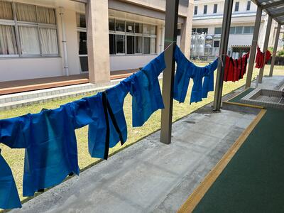 5月26日(日)運動会本番に向け、応援団の練習にも熱が入っています。晴れ渡る青空の下、暑い中に、それぞれの団長を中心に、大きな声を出し、演舞の練習に励んでいます。両団とも頑張れ!