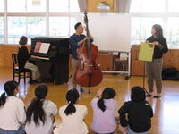 本校では、23日(月)5,6年生と24日(火)1,2年生は、亀子 政孝さんのコントラバスの演奏を、25日(水)3,4年生は、小路永 和奈さんの箏の演奏を、それぞれ鑑賞しました。「こんなに近くで」という間近で、しかも、プロの演奏家と会話をしながら、生の演奏を聴くことができ、「なんと贅沢な時間だろう」と感激しました。