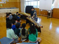 熊本県立劇場アウトリーチ事業は、市町村と共催し、小中学校や福祉施設などへ演奏家を派遣し、出前授業を実施するものです。ホールや体育館を使った鑑賞会ではなく、音楽室などの小さな空間で、生の演奏を間近で聴きながら、クラシック音楽や邦楽の魅力を伝えることを大きな目的としています。(「熊本県立劇場 演奏家派遣 アウトリーチ事業のご案内」より)