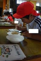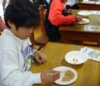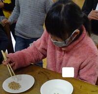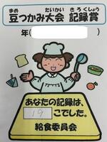 16日(木)は低学年の部,17日(金)は高学年の部、給食委員会の活動で、昼休みに「豆つかみ大会」がありました。割りばしを使って大豆を摘まんで皿から皿へ何個移すことができるかというゲームです。制限時間30秒です。自分も挑戦してみましたが、19個という結果でした。職員も参加し、子供たちと一緒に大賑わい。和気あいあいとした微笑ましい豆つかみ大会でした。