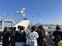 出島見学の後は、いよいよ買い物です。悩みに悩んで買い物をする子、買い物かごがいっきにたまっていく子、今、いくら位になったか考えながら買い物をする子、それぞれの買い物の様子でした。買い物をした後、坂から見える港、眺めが良かったです。