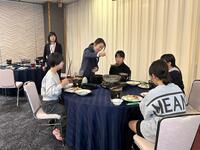 ホテルに着いて入館式。そのあと、バイキングでの晩御飯。デザートまで、たくさんいただきました。今日一日、しっかり学習し,たっぷり楽しみました。さすがは、砥用小の6年生です。
