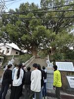ホテルに向かう途中、一本柱鳥居と山王神社「被爆クス」を見学しました。これまで、一本柱鳥居は通過するときに、車中から見ていただけで、自分も山王神社「被爆クス」も含め、初めて見学しました。