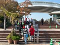 修学旅行2日目の朝、6時30分という早い朝食でしたが、パン派とごはん派、両方派と、それぞれでしっかりと朝食を取りました。朝食後の部屋の片付け。すごいです。荷物が廊下に整然と並べられています。退所式後、記念撮影をして出島へ出発しました。